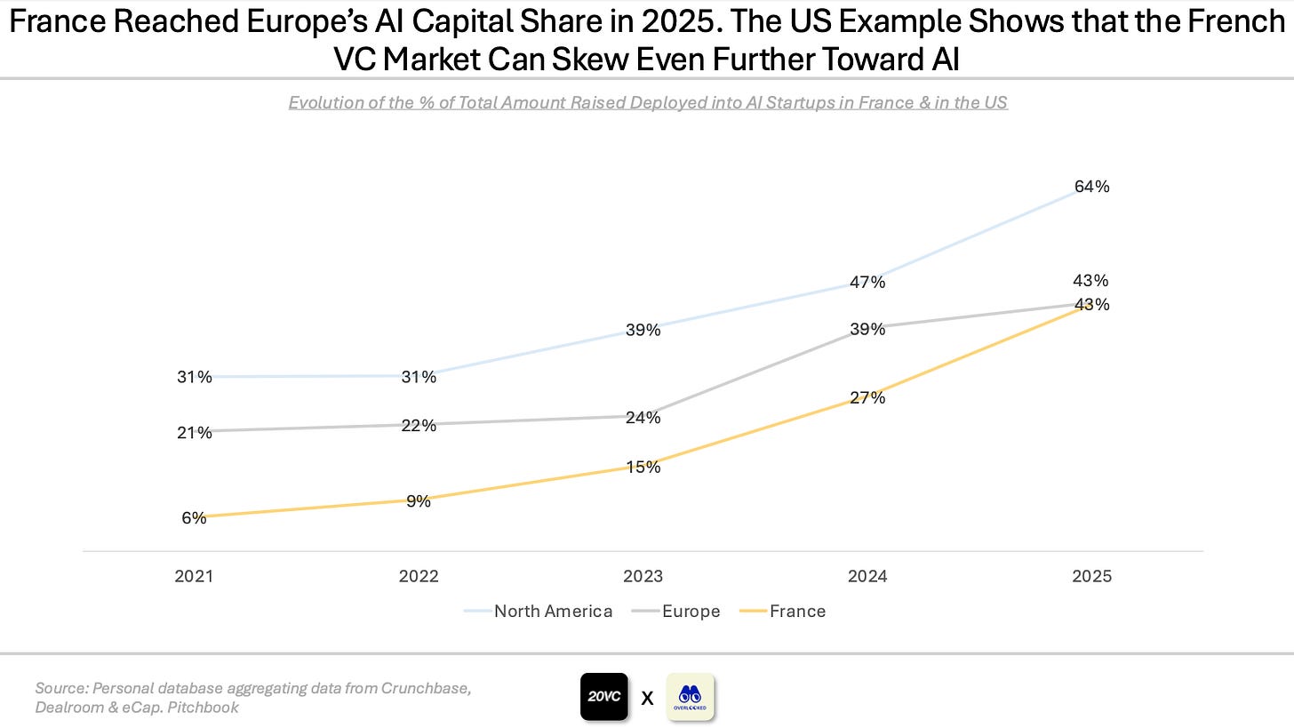 Mistral accounted for 25% of the capital raised by French startups in 2025, reflecting a global tech ecosystem in which VC is increasingly concentrated in foundation models leaders like OpenAI, Anthropic and xAI.