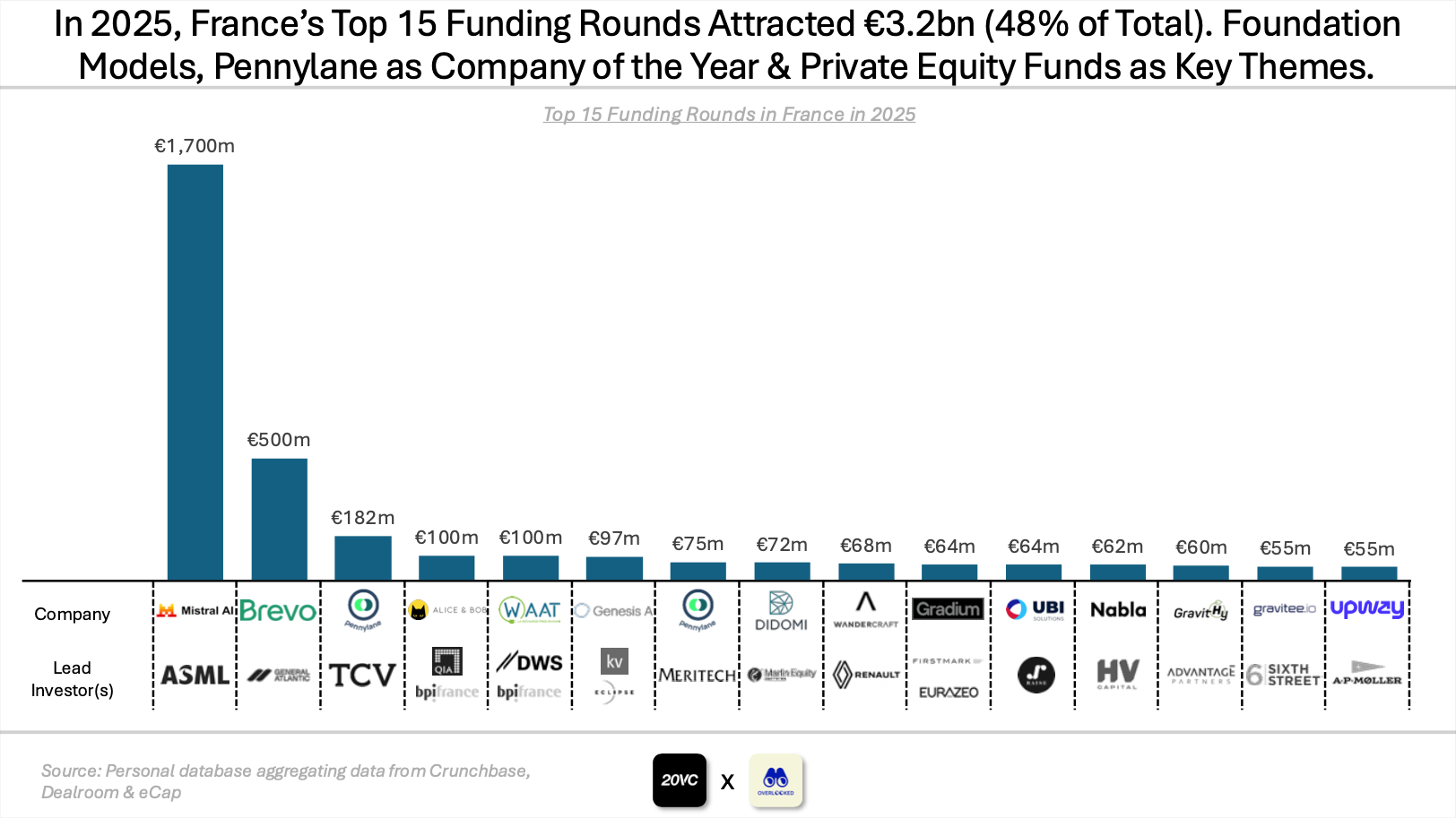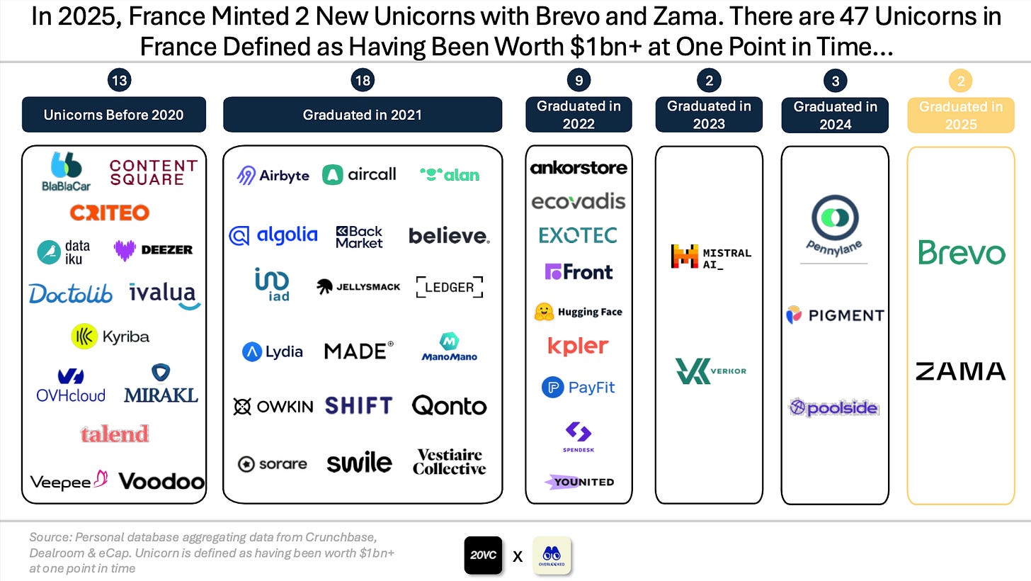 Hi, it’s Alex from 20VC. I’m investing in seed & series A European vertical solutions (vSol) which are industry specific solutions aiming to become industry OS and combining dynamics from SaaS, marketplaces and fintechs. Overlooked is a weekly newsletter about venture capital and vSol. Today, I’m sharing the 2025 edition of my report on the French tech ecosystem.